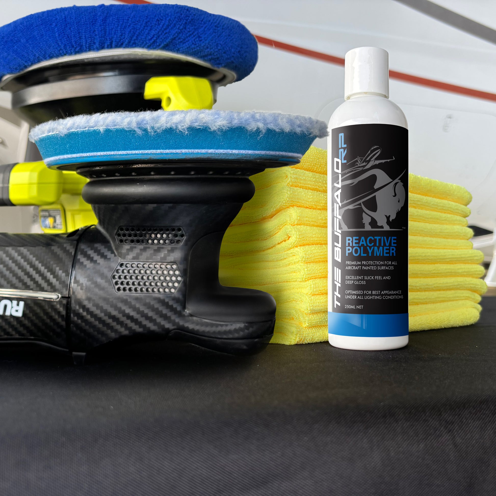 The Buffalo RP is a reactive polymer specifically designed for the aviation industry. Its specially designed formula creates a super slick, hydrophobic surface on all aircraft paint, bright-work, and polycarbonate substrates. It is the only aviation approved sealant that works on aircraft paint, bright-work, and polycarbonate. RP by design is simple to apply and cost effective for the applicator and customer.